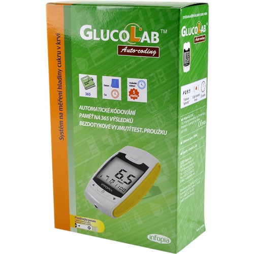 Glukometr GlucoLab Auto-coding je určen pouze pro testování mimo tělo (diagnostické použití in vitro). Glukometr je určen pouze k měření hladiny krevní glukózy (cukru). K měření používejte pouze čerstvou kapilární krev. Není určen k diagnostikování diabetu a k testování novorozenců. Konzultujte se svým lékařem vhodný způsob provádění měření a správné zacházení s glukometrem. Dbejte zvýšené opatrnosti při manipulaci s krví. Nesprávné zacházení může způsobit vážné zdravotní problémy. GLUCOLABTM Auto-coding se skládá z malých částí. Prosíme, uchovávejte glukometr mimo dosahu dětí.